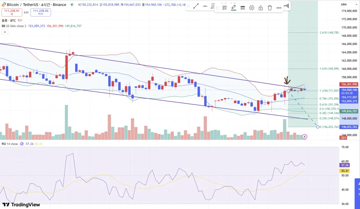 볼린저의 중앙값 위에 4시간봉이 형성되어 있지만 거래량이 받쳐주지 않고 전체적으로 하방하는 형태를 보이고 있어 투자로 들어가지는 않았습니다.