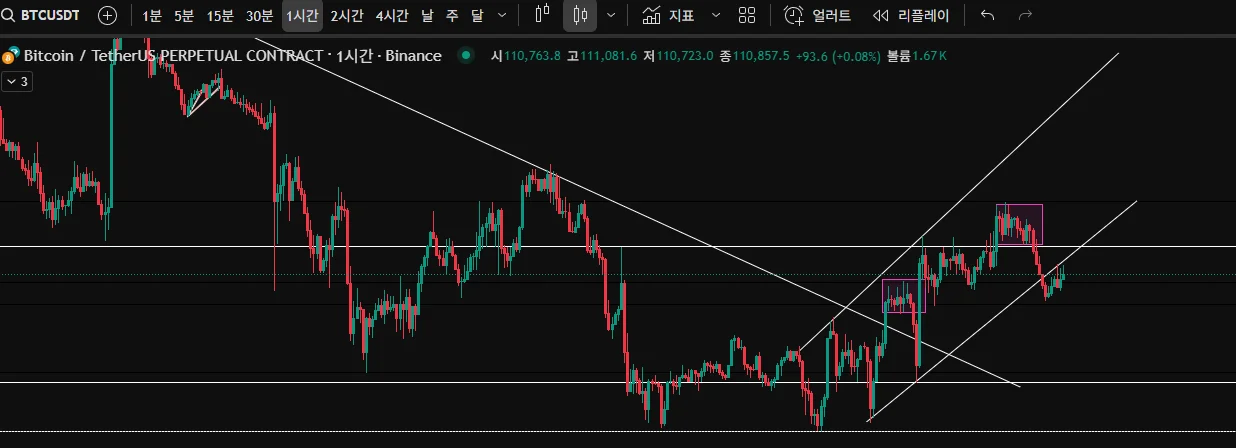 선을 긋고 박스도 해보긴했는데 앞으로 예측은 어찌 해야할지 모르겠네요 추세선 넘어갔으니 떨어져야하는데 다시 올라올것 같고.. 음..