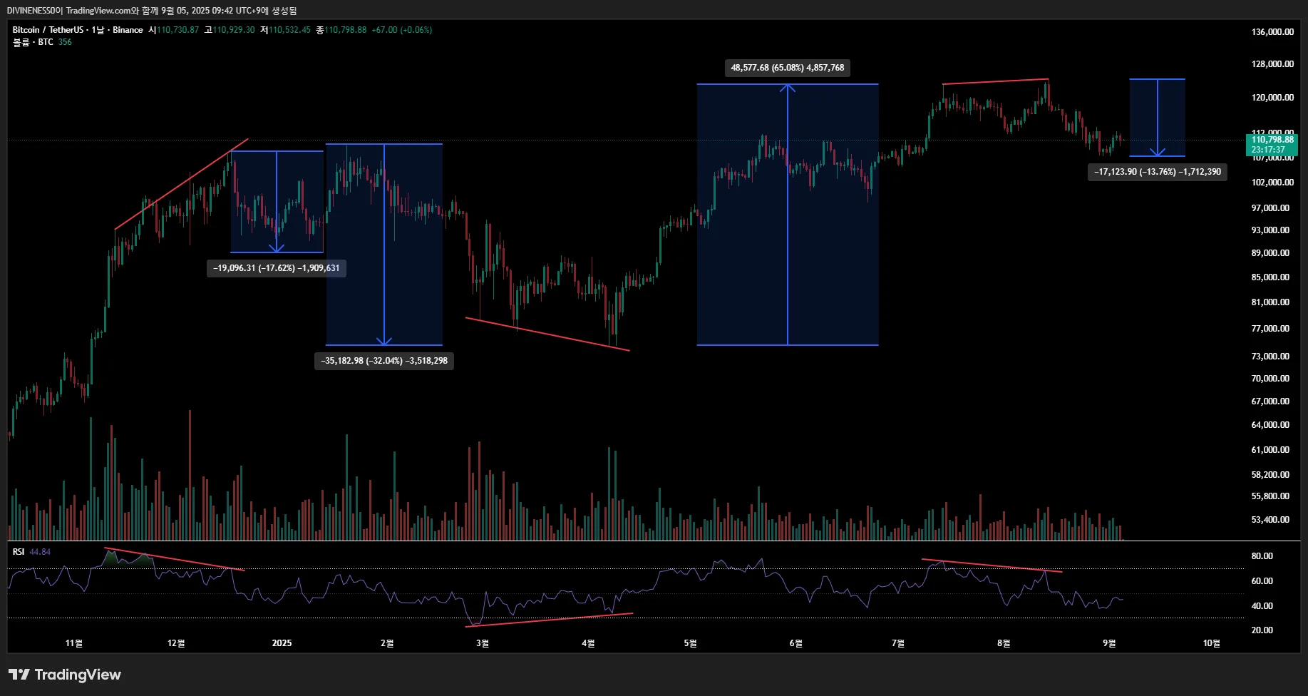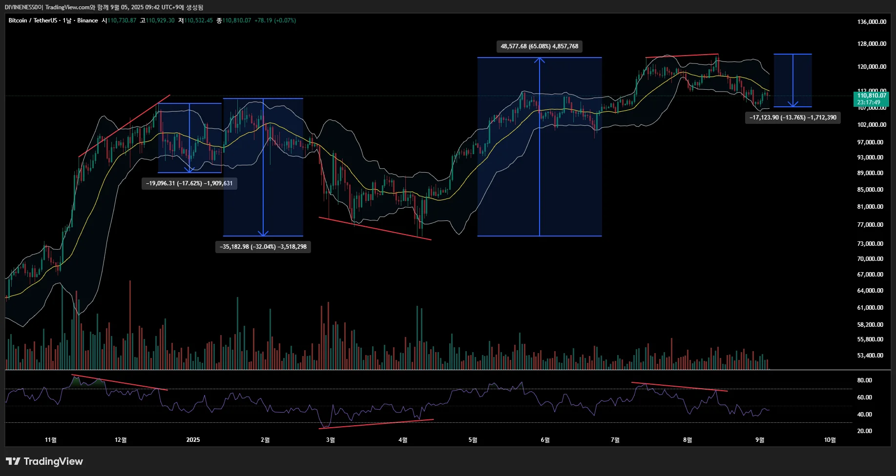 큰 차트에서 신호가 많이 나오지 않고, 다이버전스가 확정되면 추세가 전환되며 일봉 차트 만큼 기간도 길게 진행된다는게 보입니다.