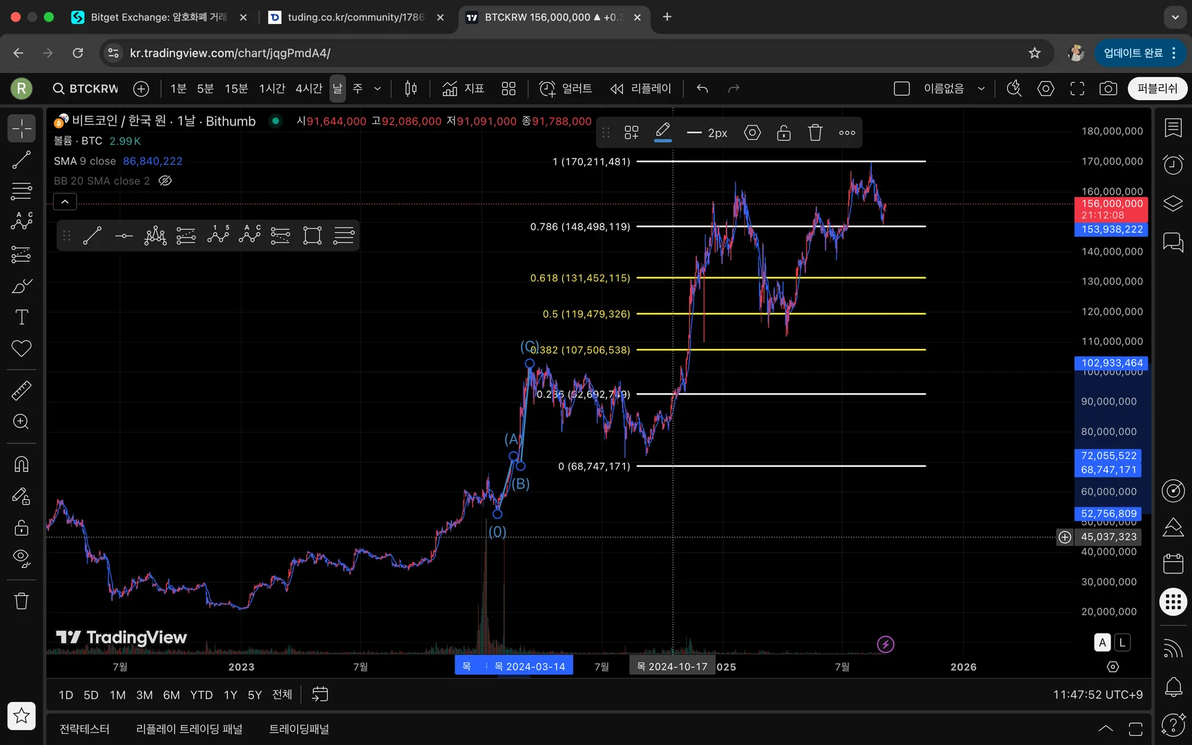 - 피보나치 되돌림 : 저점 고점 이어보기