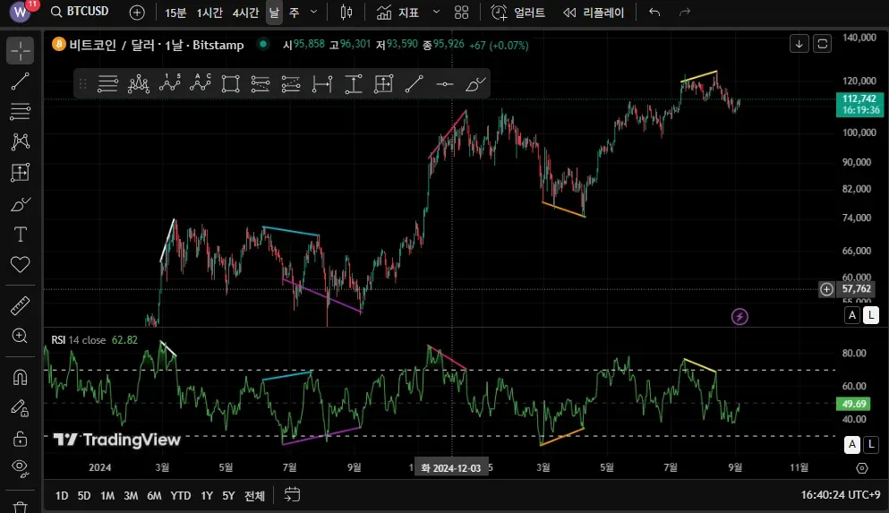 7일 챌린지11일차미션 rsi다이버젼스.볼리저밴드 이해하기 차트 캡쳐