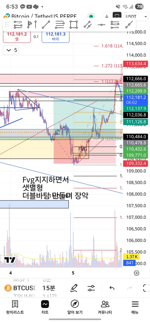 1) 1시간 fvg를 다시 채우러 왔고