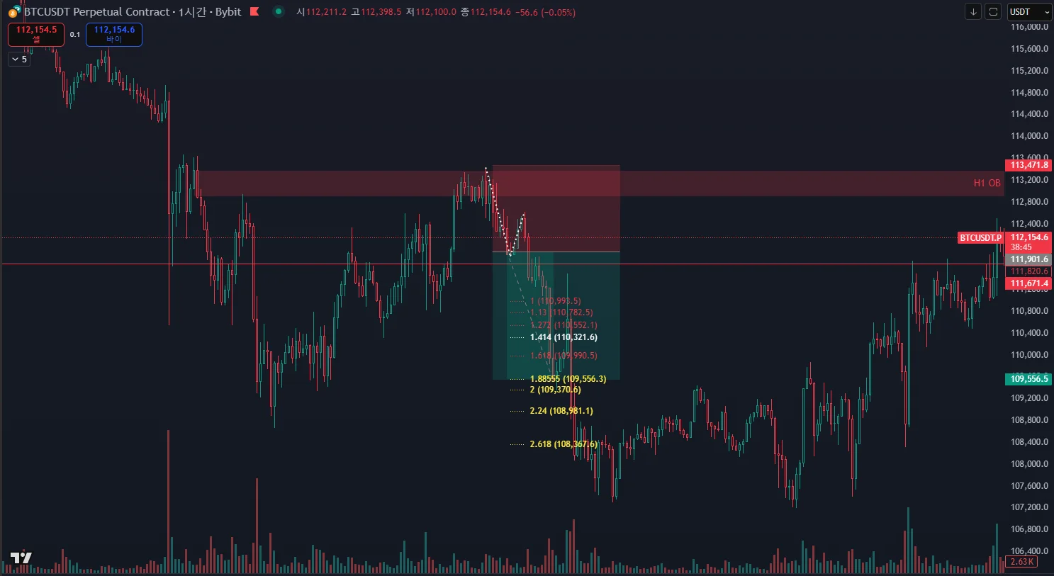 1) 이전 매물대 1h ob에서 가격저항 확인하였으나 늦게 일어나서 숏포지션 추격으로 진입