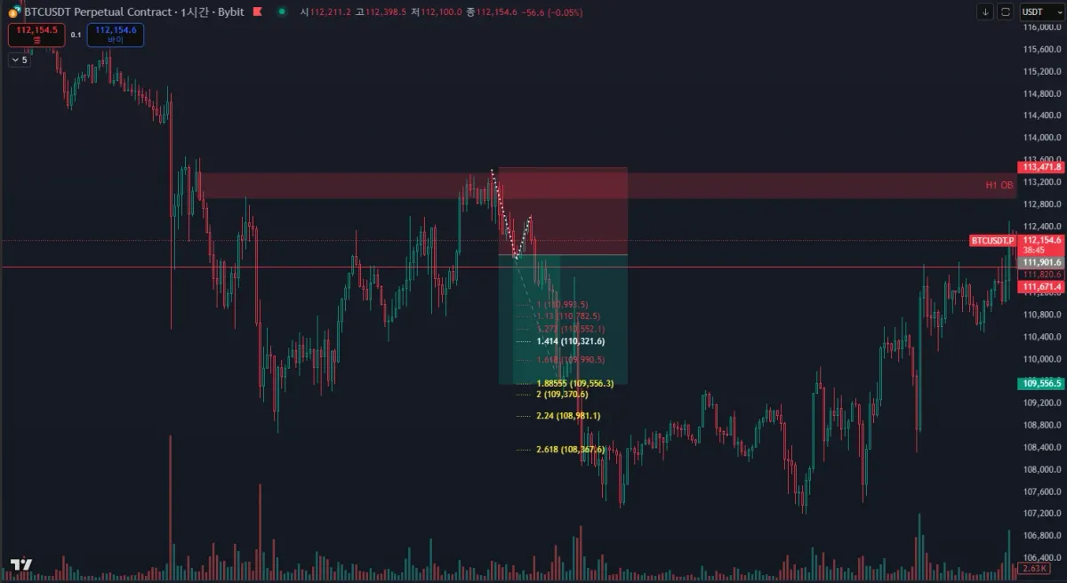 1) 이전 매물대 1h ob에서 가격저항 확인하였으나 늦게 일어나서 숏포지션 추격으로 진입