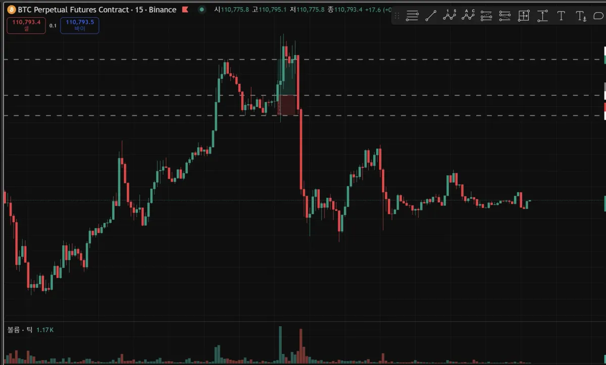 이전 최고점 저항선을 두드리러 가는 모습을 확인. 저항선 터치하는것을 목표로 수익 타겟 잡음