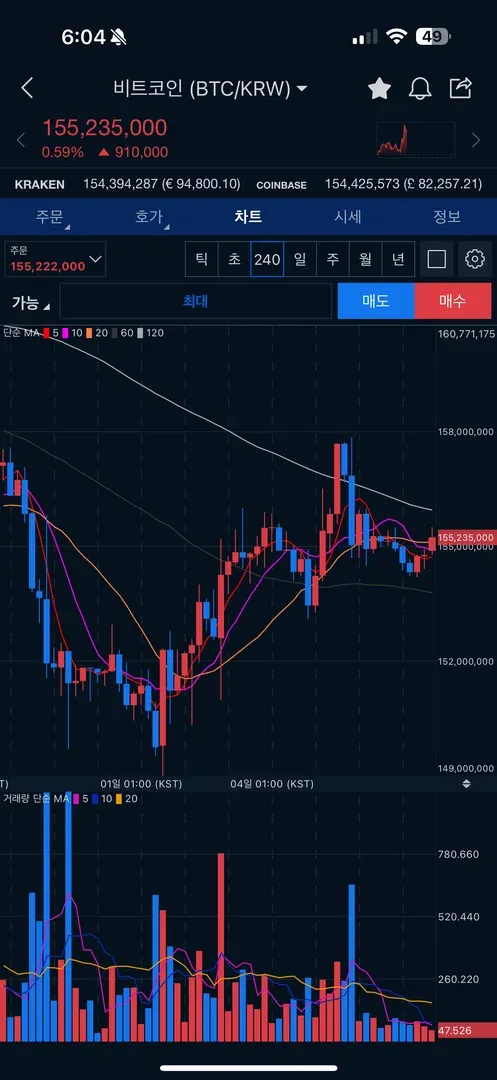 큰 하락 뒤라 반등이 올 것 같았고 150,000,000 붕괴 시 하락이 올 수 있을 것 같아 더 지켜보다가 반등 확인 후 진입함