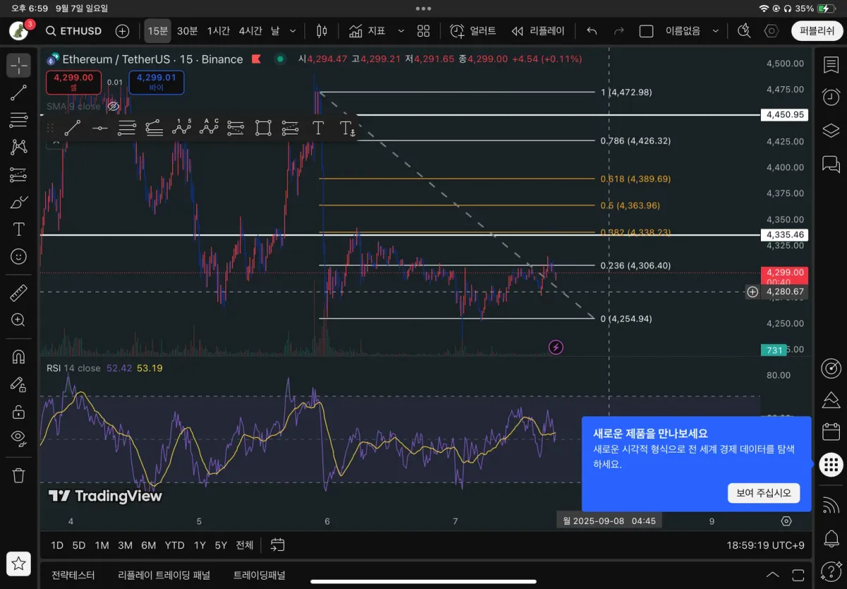 이더리움 차트에서 언제를 손절 타이밍으로 봐야할 지 확인하기 위해서 피보나치 되돌림을 사용하였고, 0.382선이 유의미한 지지저항대가 된다고 판단하였습니다. 이때 저항선을 뚫으면 조금 더 지켜보고 뚫지 않으면 손절하자고 생각했는데 역시나 저항선으로 작용하는 것 같아 손절했습니다.