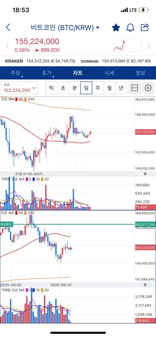 위(4시간)의 50ma 선을 지지로 보고 매수를 진행하나 싶었으나, 일봉상으로 봤을때 ma 선 사이에서 지지와 저항을 받지 않아 고민.