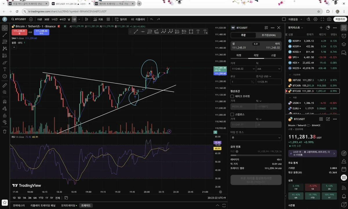 매도: 두 번째 동그라미에서 분할 매도 111,241.24 111,223.20