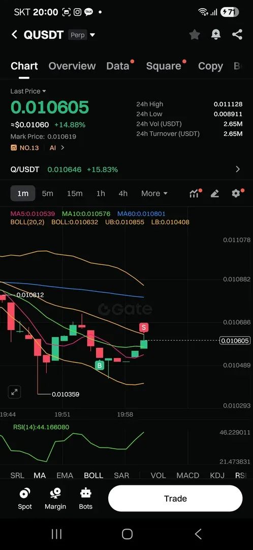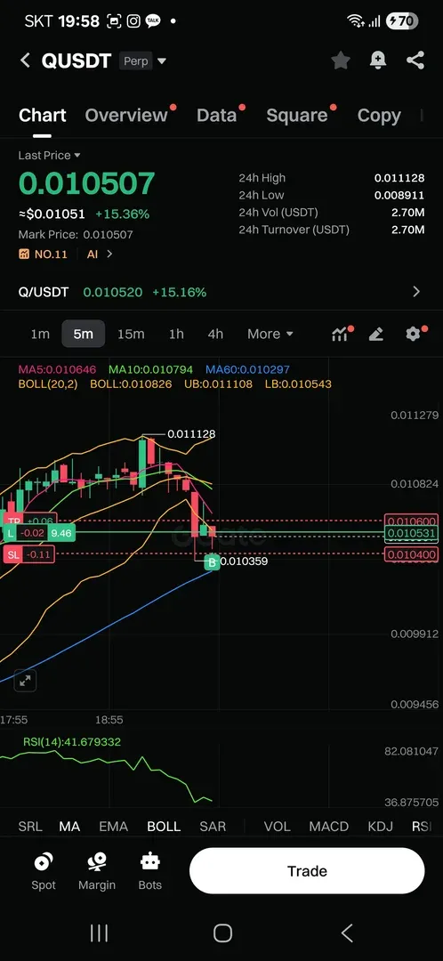 5분봉 기준 볼린저 밴드 하단 돌파 확인