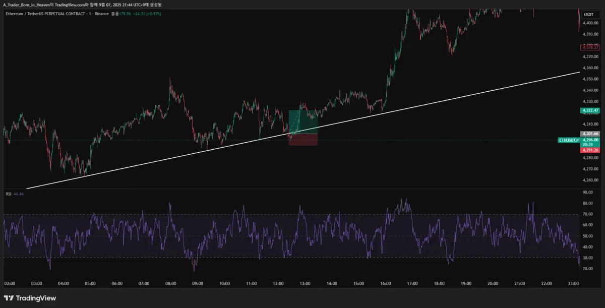 추세선과 rsi를 사용해봤습니다