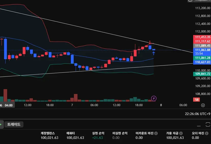 첫 모의트레이닝에서 처음 시도한 숏포지션매매가 수익으로 종료되어 만족스럽습니다.