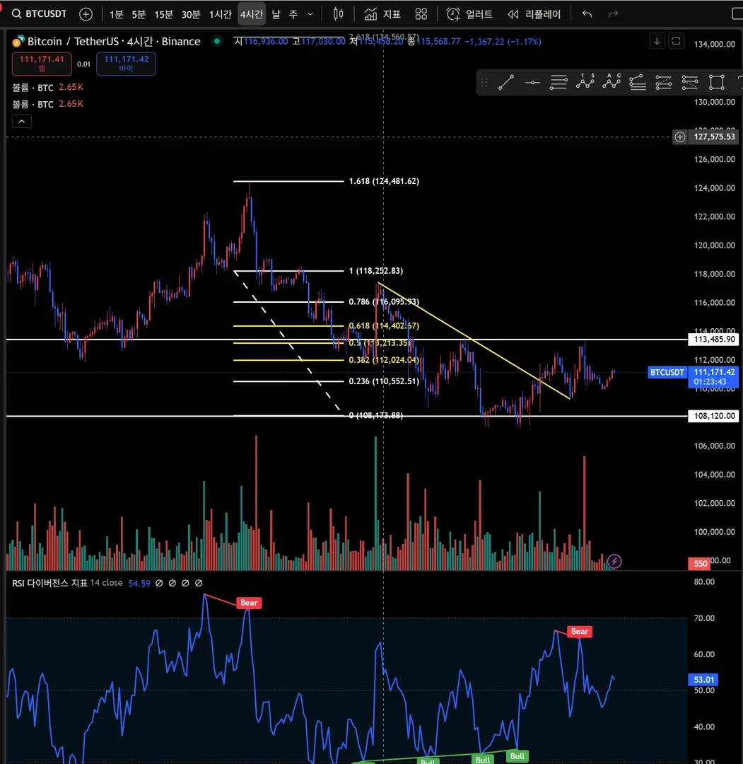개인적으로 가장 잘 이해를 하고 있다고 생각하는 추세선 및 저항선(가로줄), 거래량과 피보나치를 가지고 테스트를 해보았습니다.