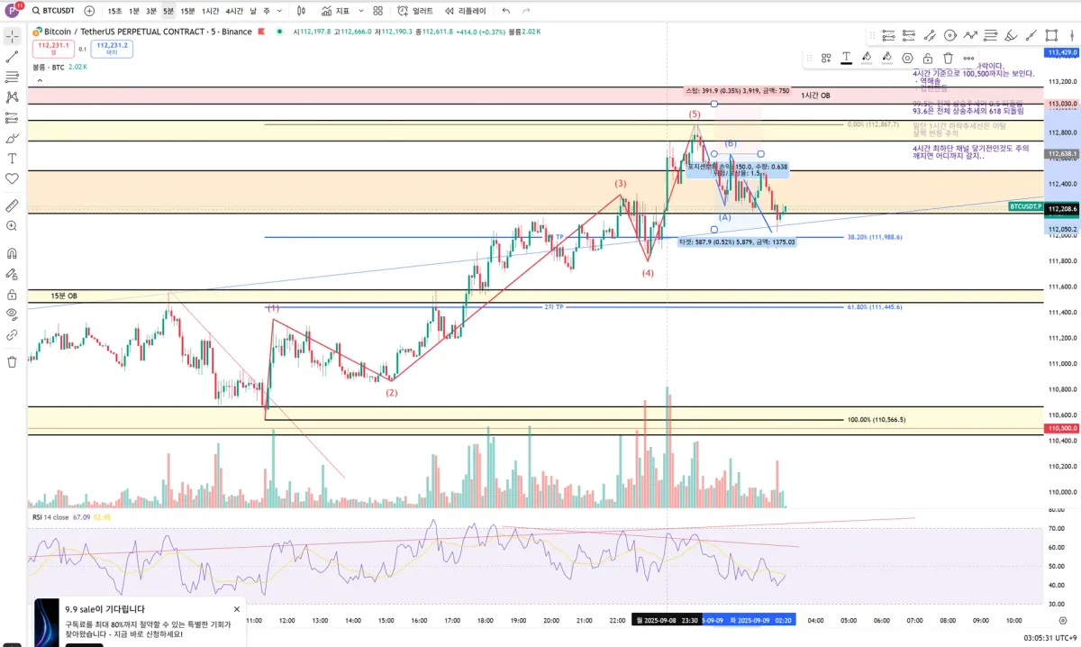 3) 참고 - 1시간기준 RSI 추세선 기준 너무 과매수 시점