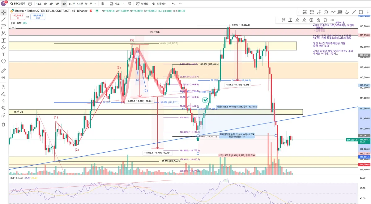 □ SL : 110,714 (손익비 1:1.5 세팅, 1.618확장 살짝 밑에)