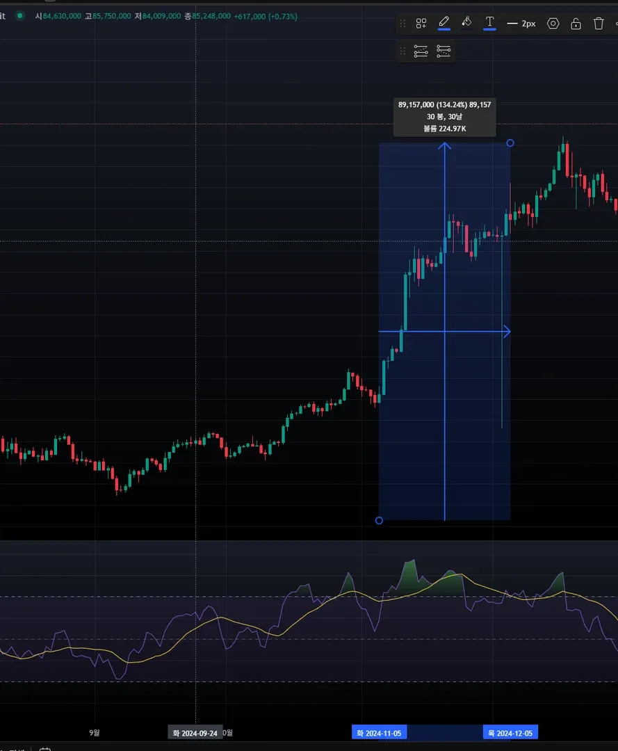 가장 최근 다이버전스 가 나온구간은 2024년 11월~12월 구간이 명확하게 나온거 같습니다 .