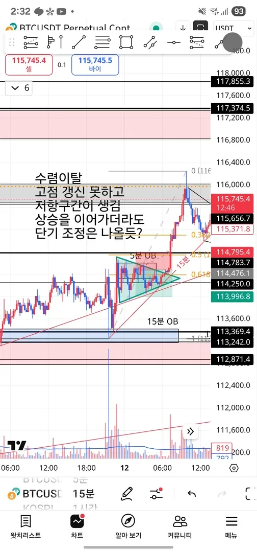1) 캔들 모니터링 결과 고점을 갱신하지 못했고