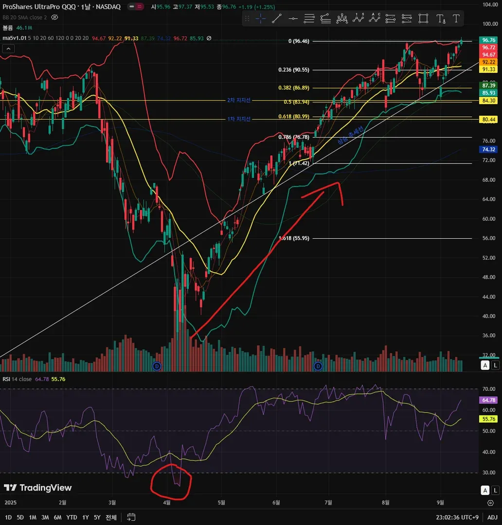그런 부분을 감안하더라도 TQQQ의 RSI 가 과매도 상태에 들어가는 것은 매우 드문 현상이였으며,