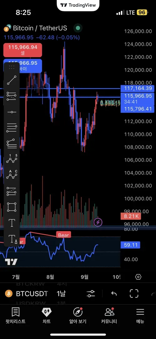 rsi 지표로 보면 상승할 거 같습니다. 7~8월 거래량을 보고 저항선을 작도했는데 이게 유의미한 선인지 잘 모르겠지만 아마 저기 닿고 저항을 받아 떨어질 거 같은 느낌이 듭니다.