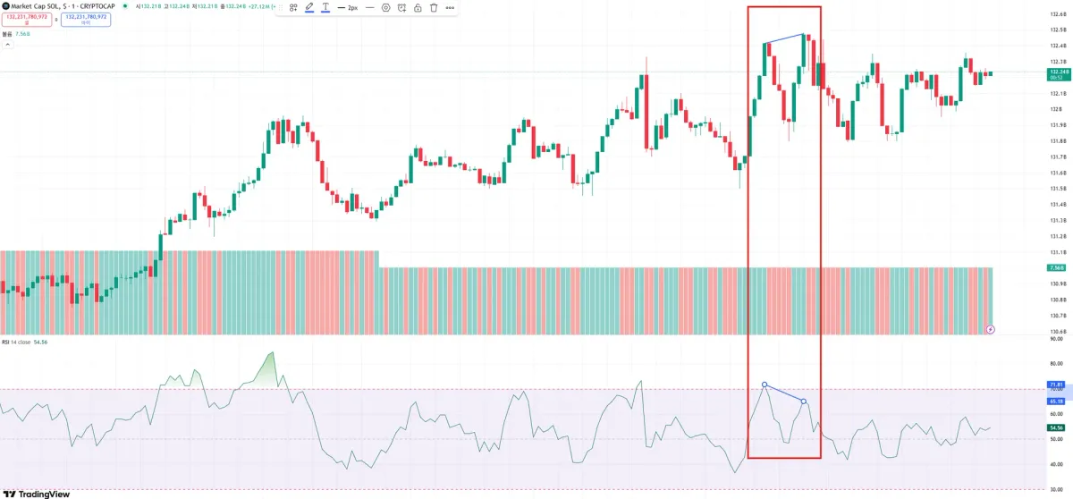 짧지만 하락 다이버전스 구간이 나타난 것을 확인할 수 있었습니다.