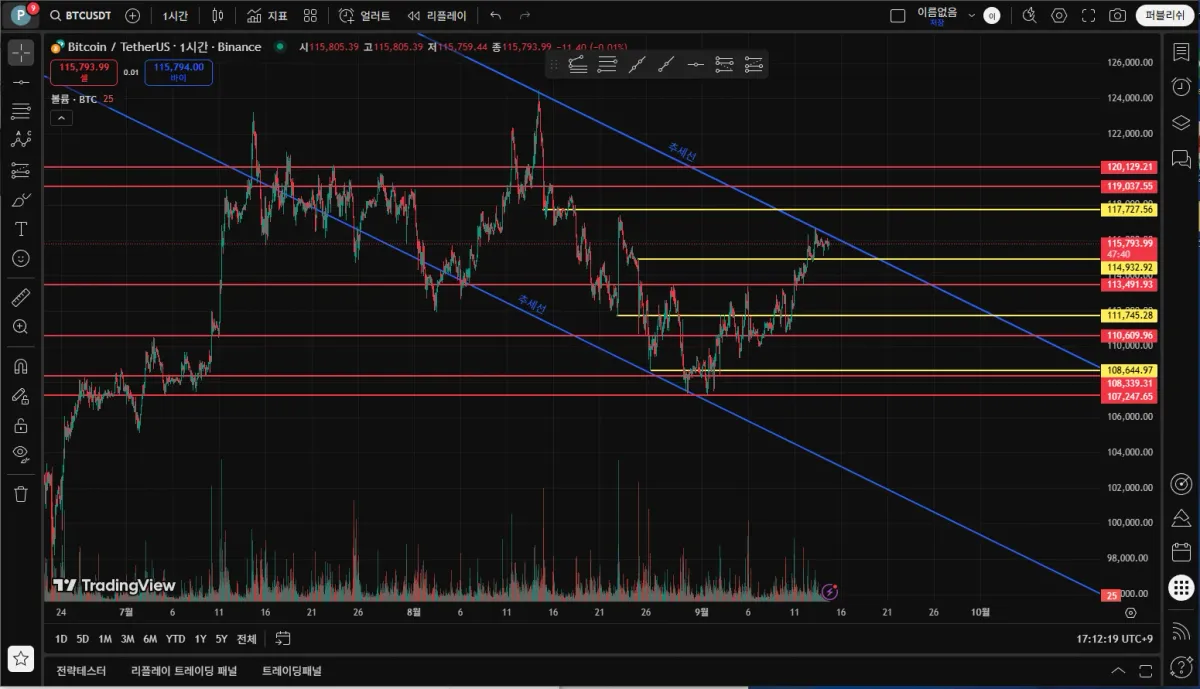 노란색: 단기 급상승 및 급하락 &많은 거래량(단기지지 혹은 저항선이될수있음)