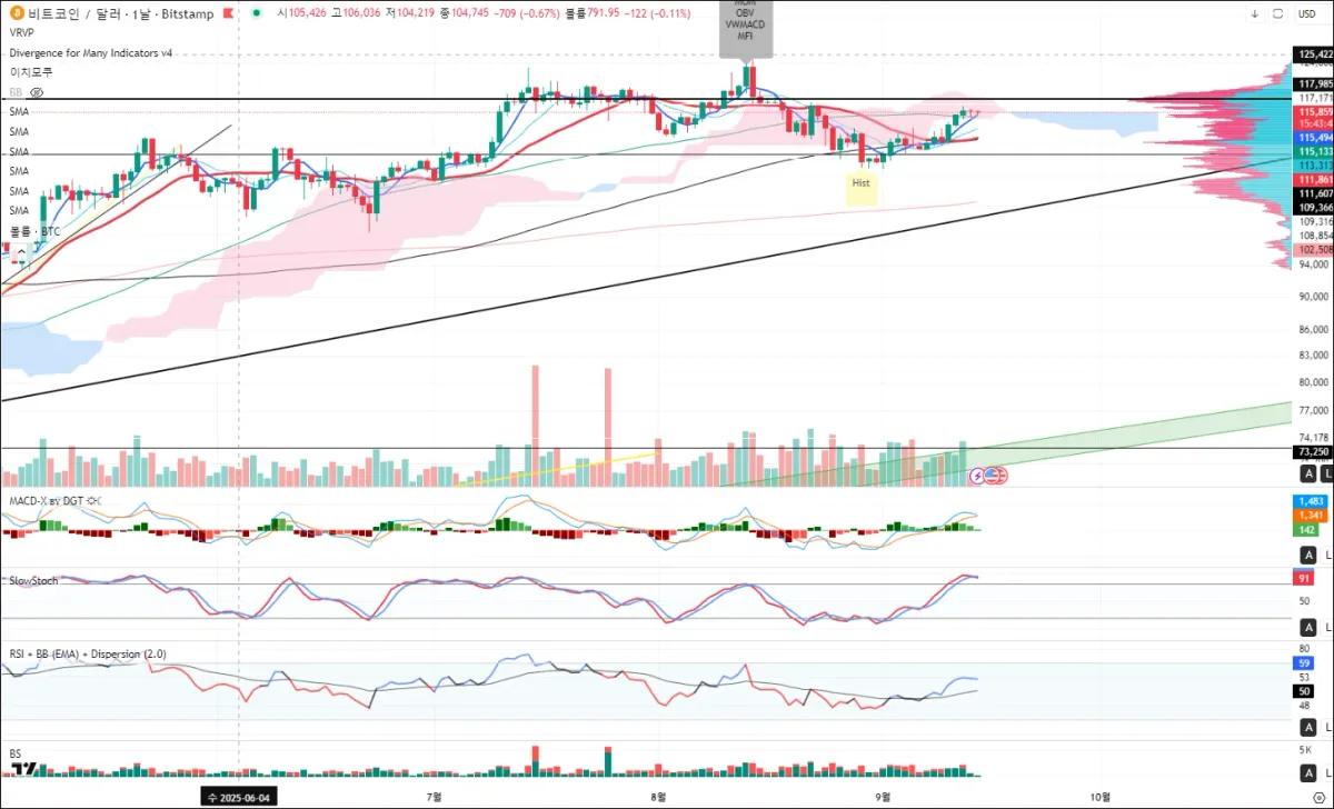 RSI수치는 매수세가 들어오고 있는 것 보여주는 상승세 유지중