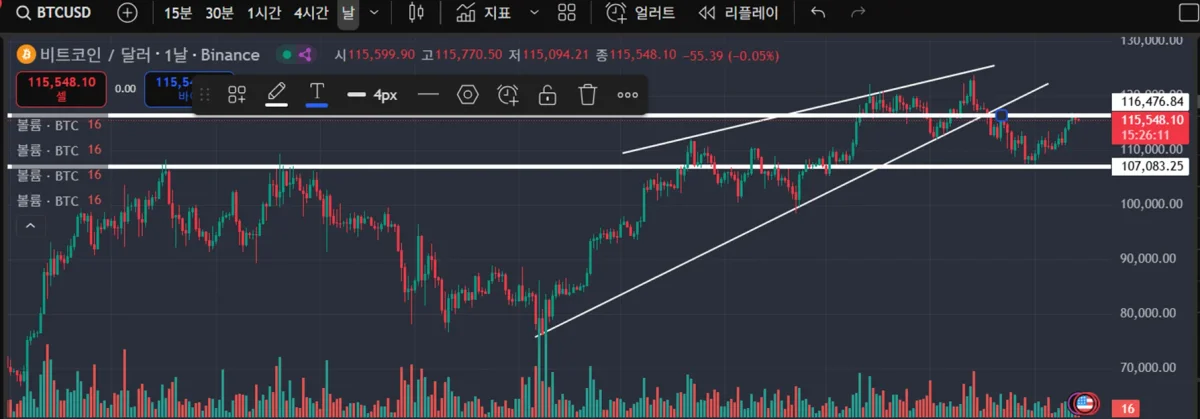 비트코인 1일 차트 입니다. 상승추세 이후 박스권입니다.