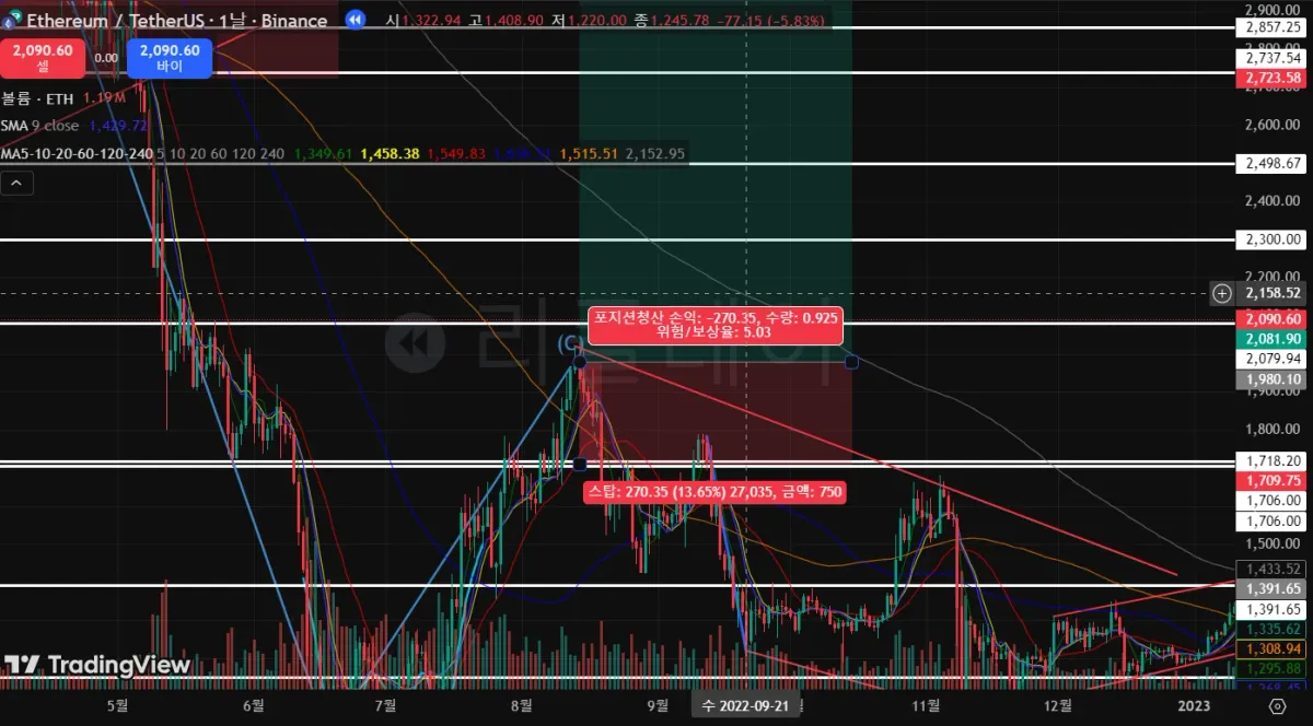 23년도 1월에 다시한번 매수에 들어갔습니다. 이번엔느 다우이론 적용해서 수익을 냈습니다.