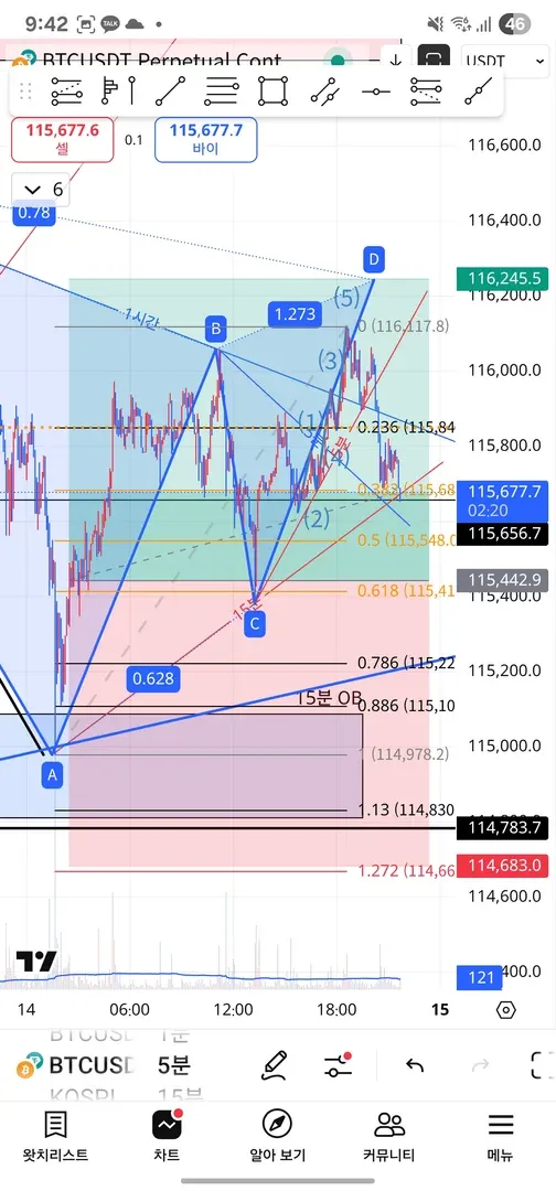 가틀리 만들어지는듯해서 계속 홀딩했는데 황금비율 못만들고 임펄스파동 끝이 보이고 조정파동 시작하길래 조기익절