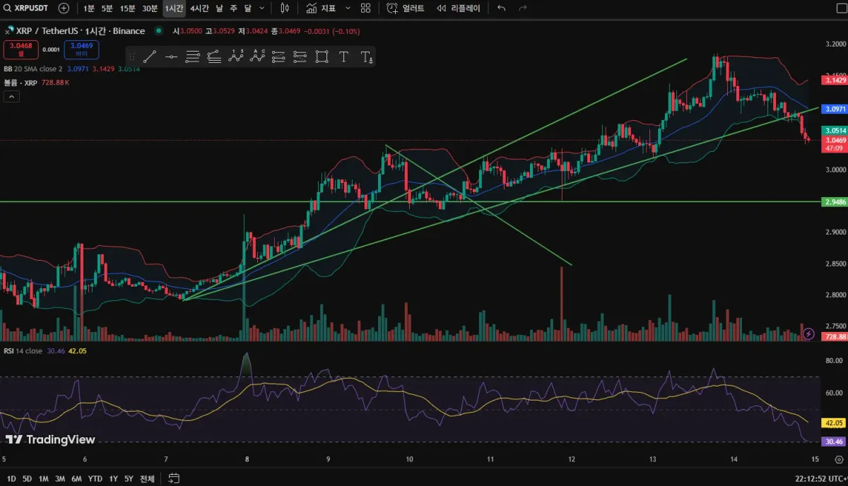트레이딩 활용으로 XRPUSDT 차트에 적용해 보았습니다.