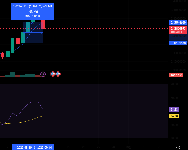 RSI 과열이 식혀진 상황에서, 5일봉 기준 이탈 후 다시 진입할 시 매수, 다시 5일봉 이탈 시 매도 기준으로 매매 계획을 세웠습니다.