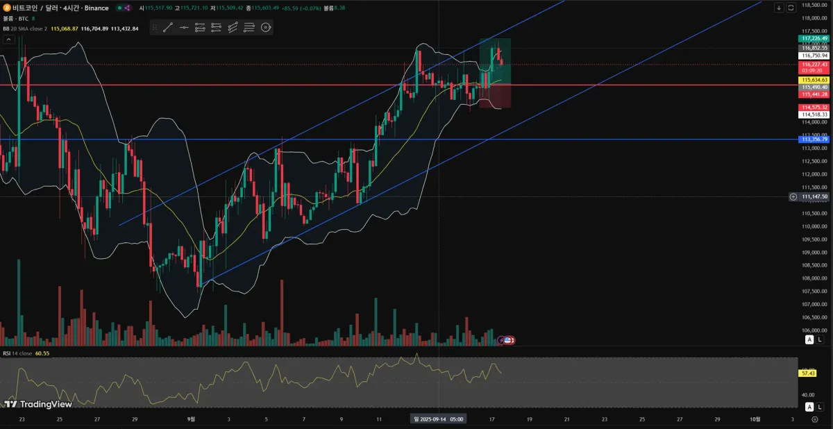 117,200에서 익절 걸어두었지만 바로 아래서 꺾이는 모습을 보여 스탑로스를 좀 위로 다시 올려 손실을 최소화 하려고 합니다.