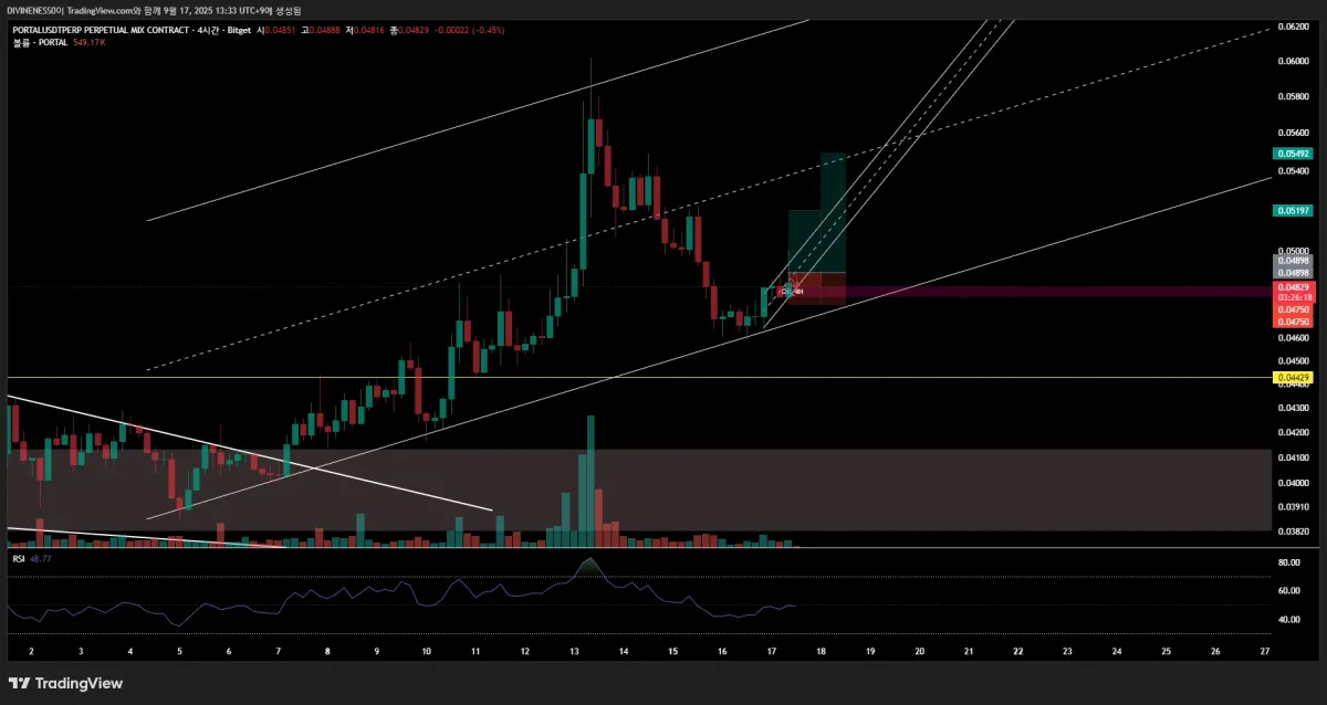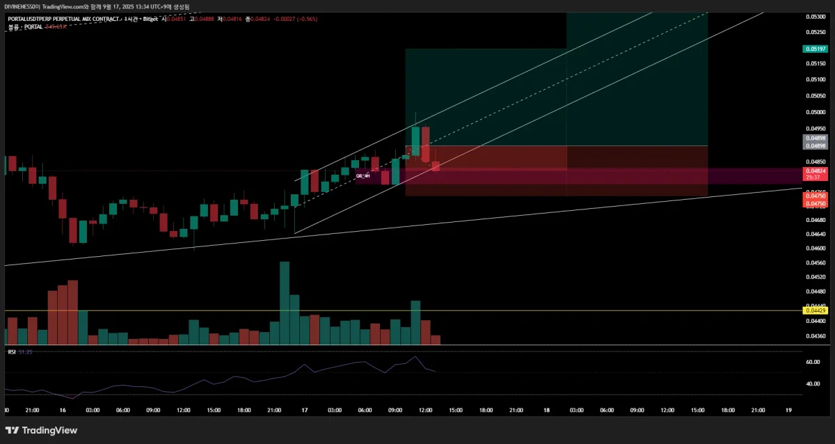 손절은 오더블럭 캔들 하단과 상승채널 이탈 시 유동성 발생 가능성 열어두고 하단으로 설정