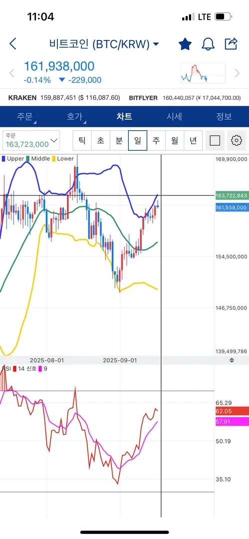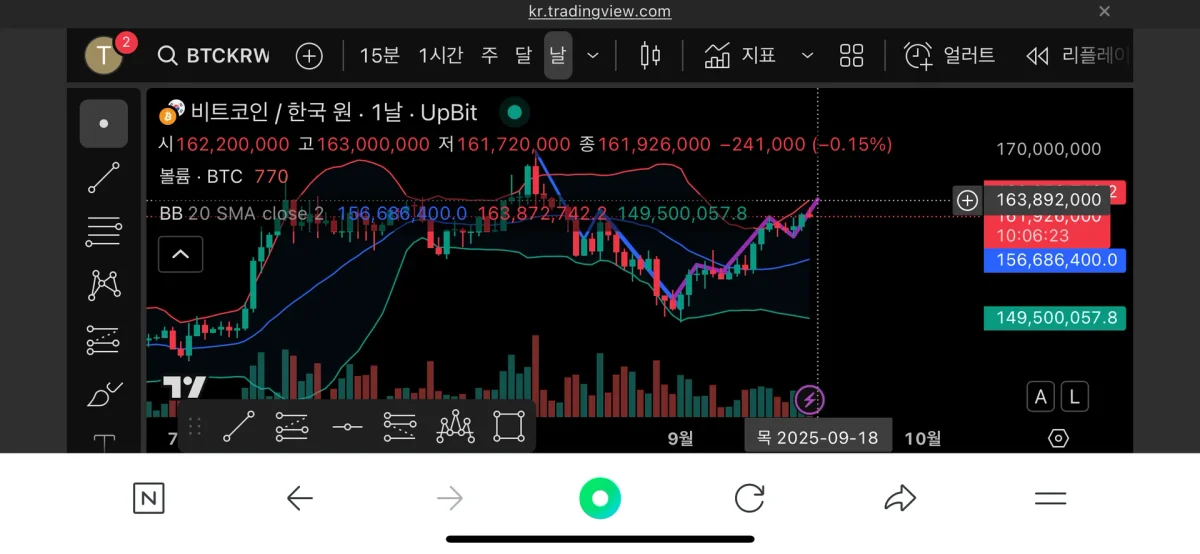 5파의 끝자락 이지만 추세를 따라 161,850,000시점에 들어가면 163,000,000까지 갈것으로 생각하여 매수