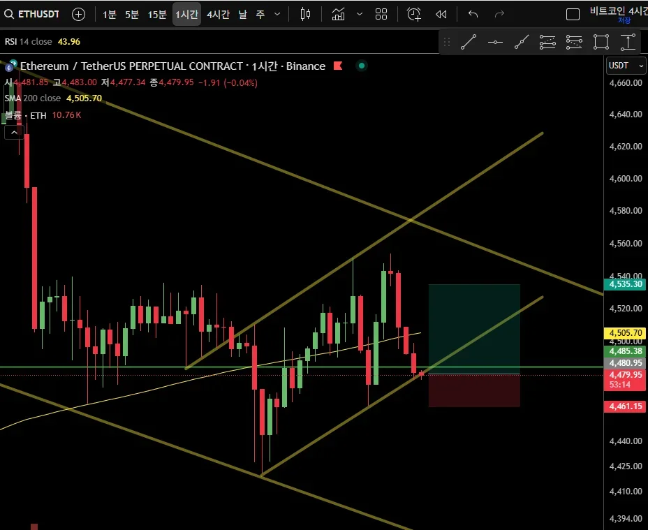 상승추세선 기준으로 전저점 기준 잡고 진입하였음.