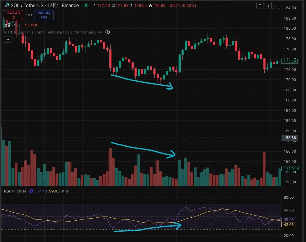 예시로 올린 상승 다이버전스는 1시간 봉에서 약 20개 정도의 봉으로 표현되었지만, 시간 간격을 30분 또는 15분으로 변경하면 더 많은 개수의 봉이 나타나므로 좀 더 명확하게 보입니다.