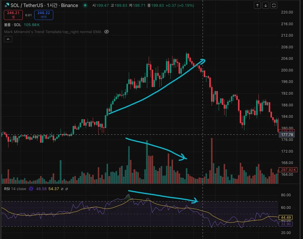 상승 다이버전스와 하락 다이버전스의 예시를 찾아서 업로드합니다.