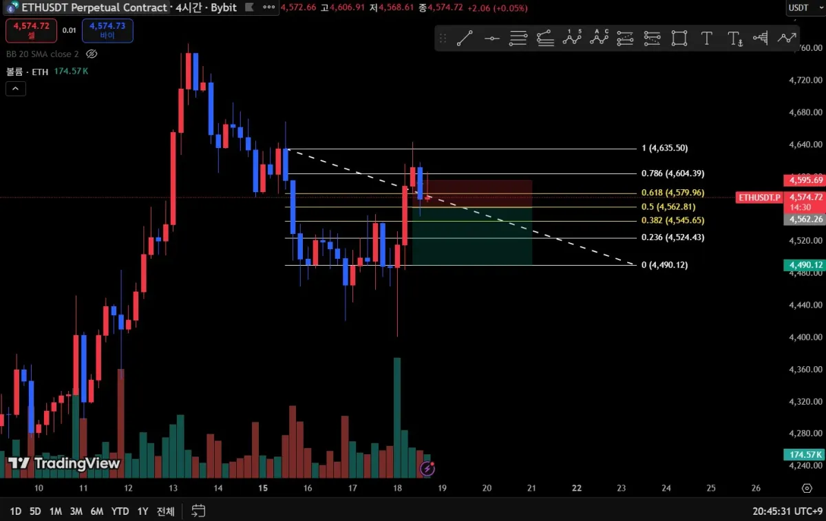 1. 정확히 중심선까지는 오지못하고 반등한 모습