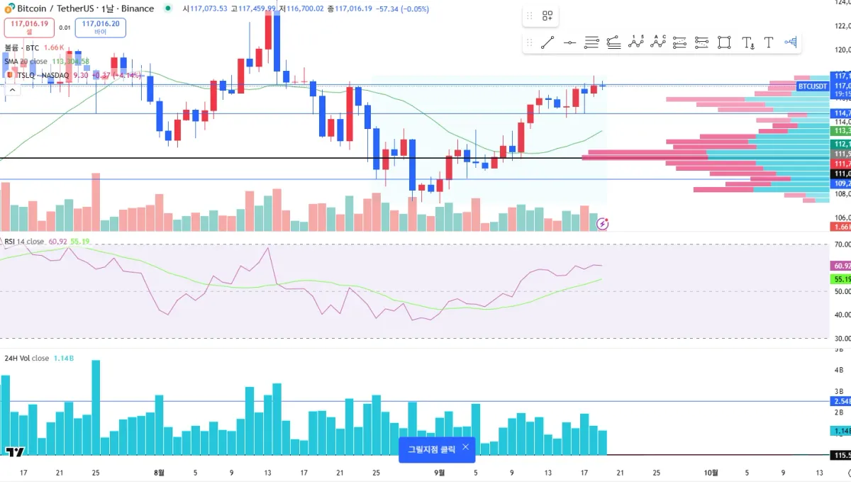 RSI 지수가 상승하고, 거래량도 상승하고 있기에 다이버전스라고 보이지 않음. 추세가 크게는 바뀌지 않고 살짝 오르거나 살짝 빠질 듯 보임.