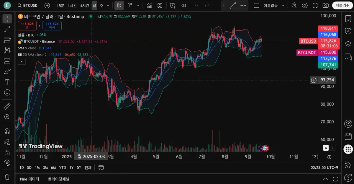 단순이동평균선과 볼린저 밴드 이용
