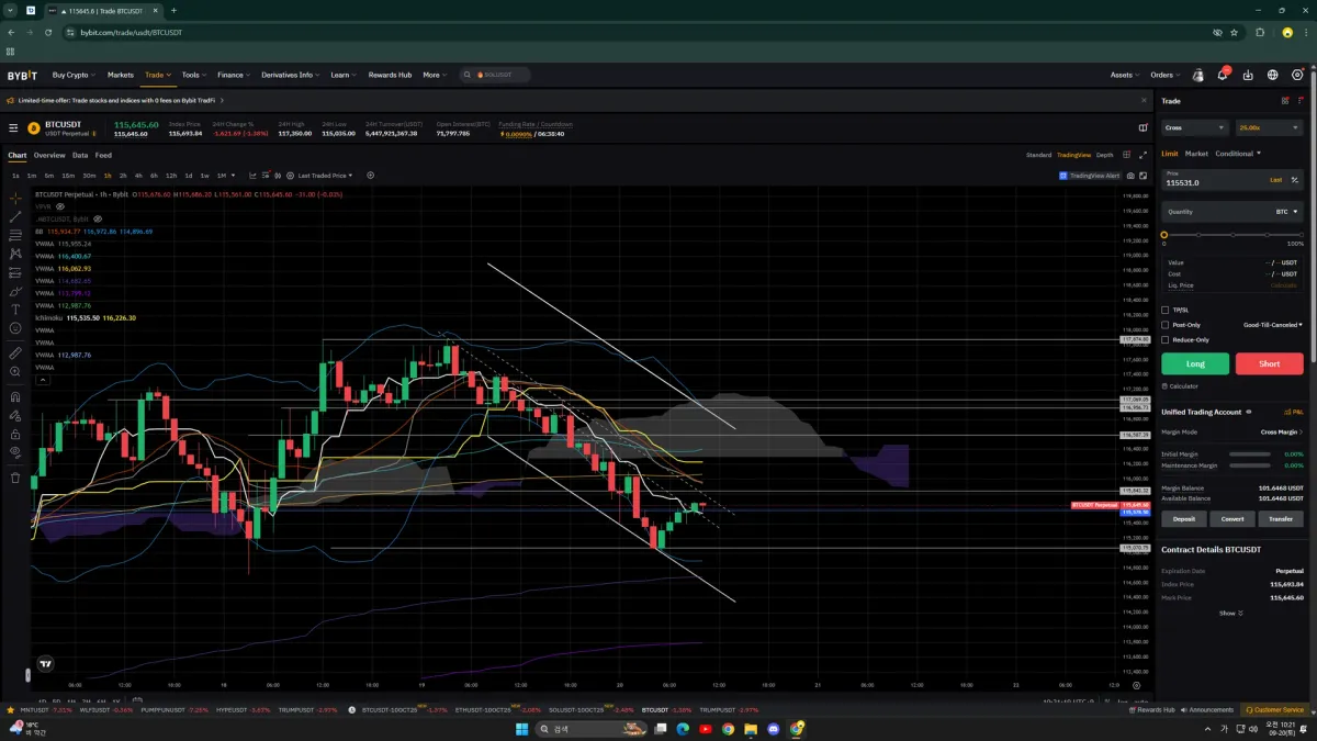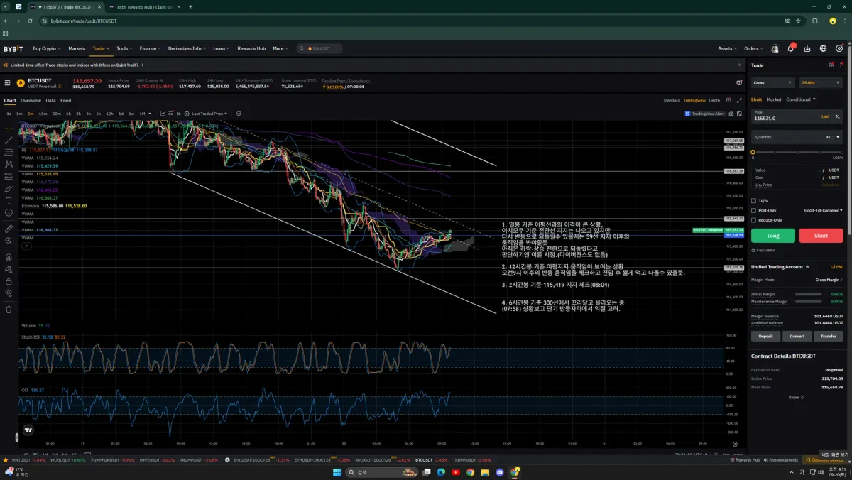 4. <2시간봉 기준> 115,419 지지 체크(08:04)