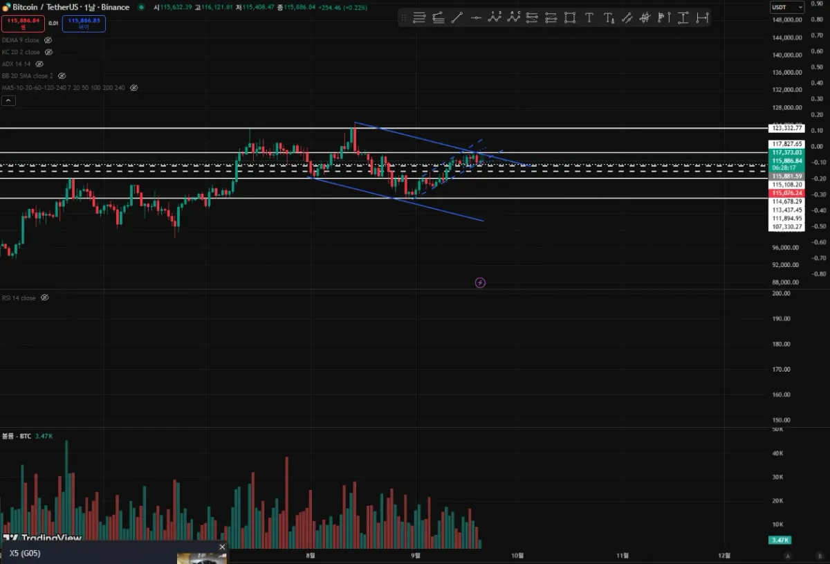 일단 일 차트로 지지선과 저항을 실선으로 작성했습니다.