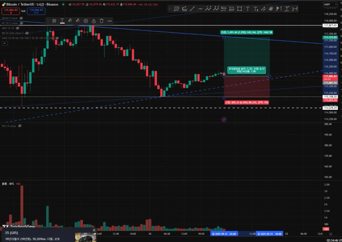 마지막 1시간 봉에서 손익비로 손절, 익절 라인을 잡았습니다.