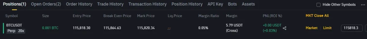미션을 진행하기 위해 테스트로 아주 작게 매수를 진행하고, 손절 익절 주문을 걸어놨습니다.
