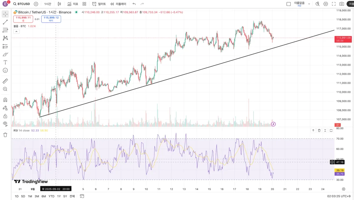 고점을 갱신하며 상승 추세를 이어가고 있고 RSI 지수도 30 근처로 더 오를 것이라 생각해서 추세선에 근접했을 때 매입했습니다.