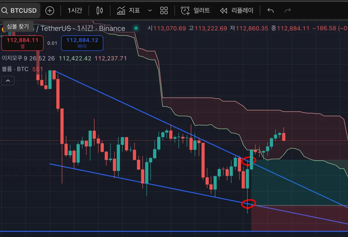 반익 하자마자 내려가는 거 보고 쫄아서 30초만에 바로 나머지 반 팔아버림 -> 결국은 뚫고 올라가는 모습을 보임