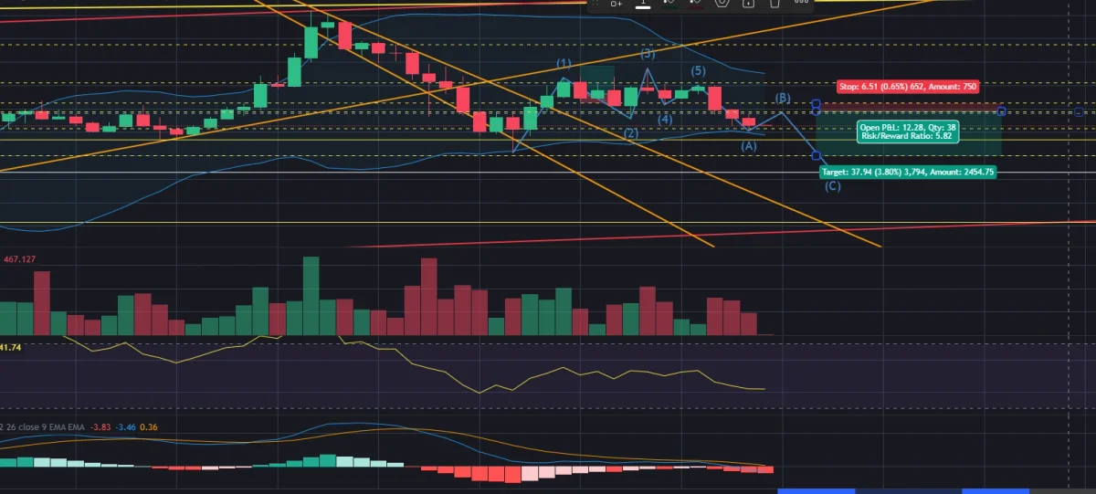 1시간봉도 MACD + 엘리엇 파동 하락 으로 예상됨 -> B 파에서 숏 해볼까
