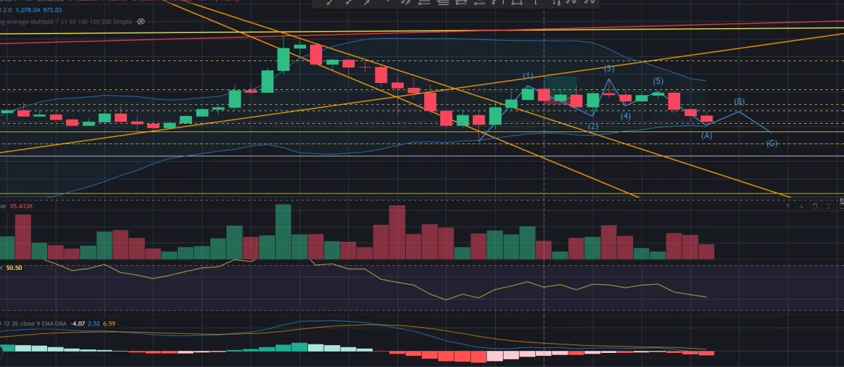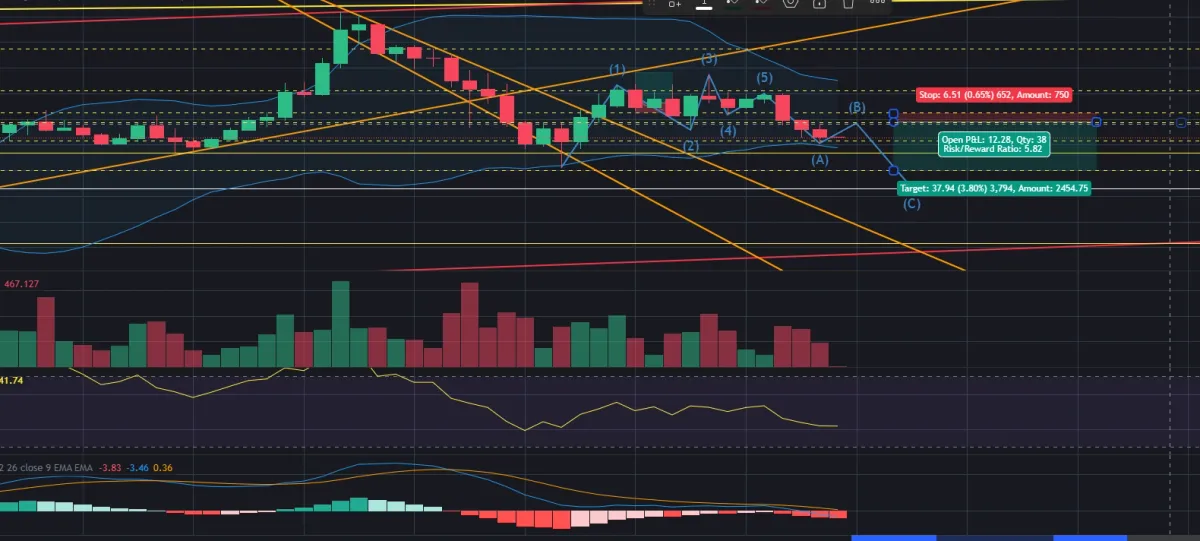 1시간봉도 MACD + 엘리엇 파동 하락 으로 예상됨 -> B 파에서 숏 해볼까