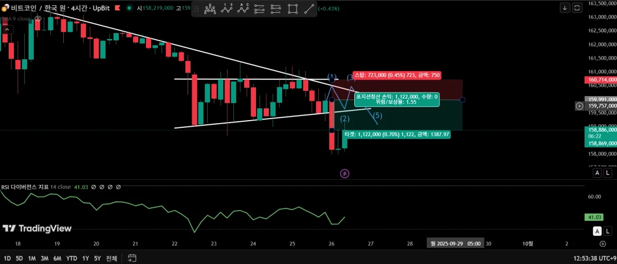 2. 확연하지는 않으나 상단형 쐐기 패턴으로 보여져 하락세 예측