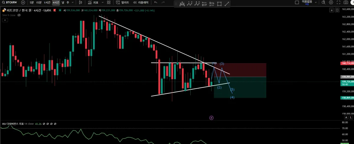 2. 확연하지는 않으나 상단형 쐐기 패턴으로 보여져 하락세 예측